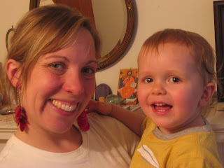 Isaac loves getting into our things. Of particular interest is Jen's collection of accessories. Getting a hold of her bag of scarves and pitching them over the bed and all over the floor is one favorite. As pictured, playing with her jewelry is another :-)