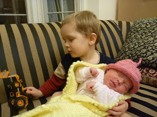 After months of talking to Isaac about Amelia being in mommy's tummy and how he was going to be a big brother, he finally got to see her and have it become more concrete.