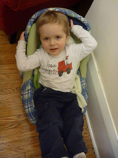For the most part, Isaac has been a little person in a larger world. As he's outgrown things, we've packed them away or loaned them out. Everything has been either his size, or much larger. Now that Amelia is on the scene, he is discovering a new world in which it is he who is too big.